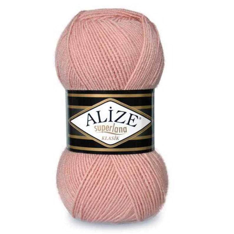 Alize Superlana Klasik är ett mjukt, ljusdunkelt garn som blandar slitstark akryl med mysig ull. Varje nystan på 100 g ger 280 m slät och lättskött fiber - perfekt för babykläder, lätta tröjor, sjalar och detaljerade stygnmönster.