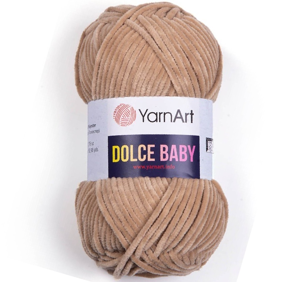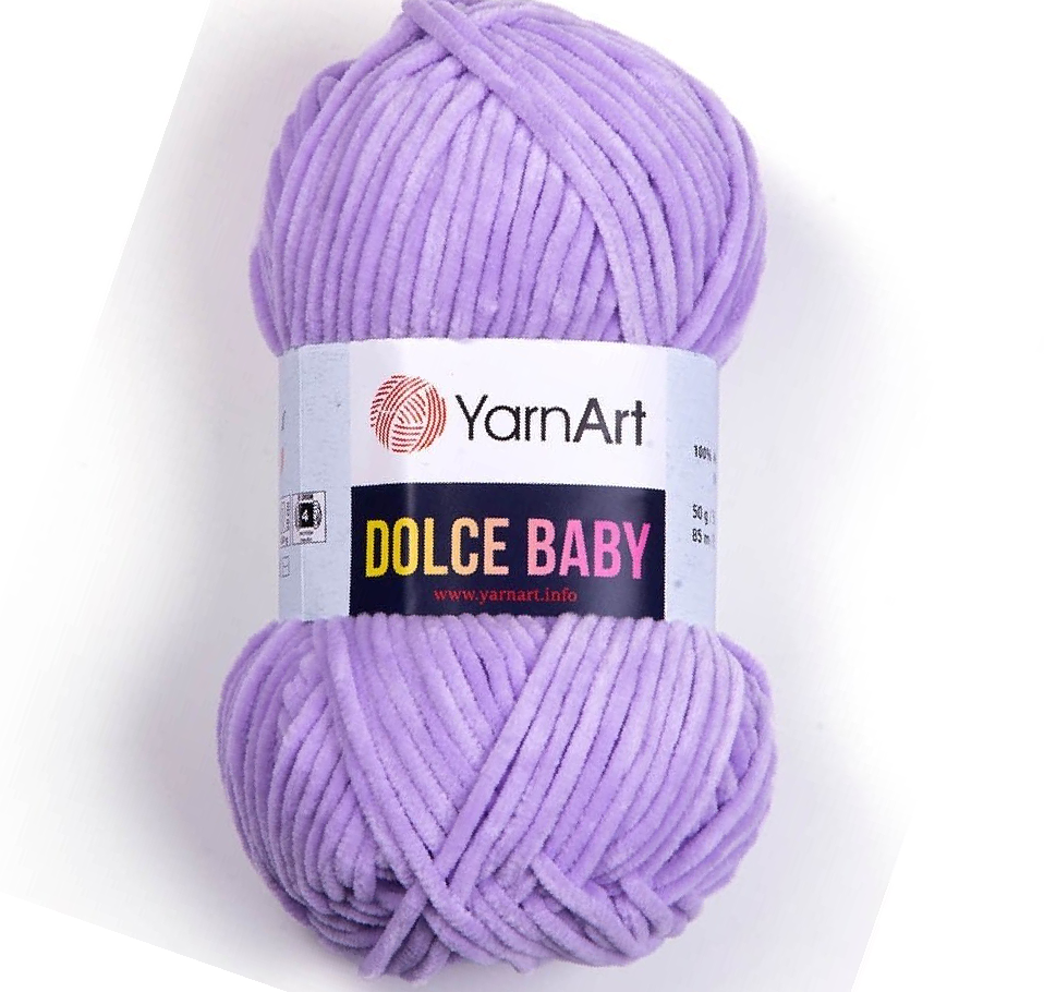 YarnArt Dolce Baby är ett lyxigt mjukt garn med velvet tillverkat av mikropolyester. Varje nystan på 50 g ger 85 m plyschig kamgarnsfiber - perfekt till mysiga filtar, hårband, tofflor, sittpuffar, väskor och charmiga amigurumi.