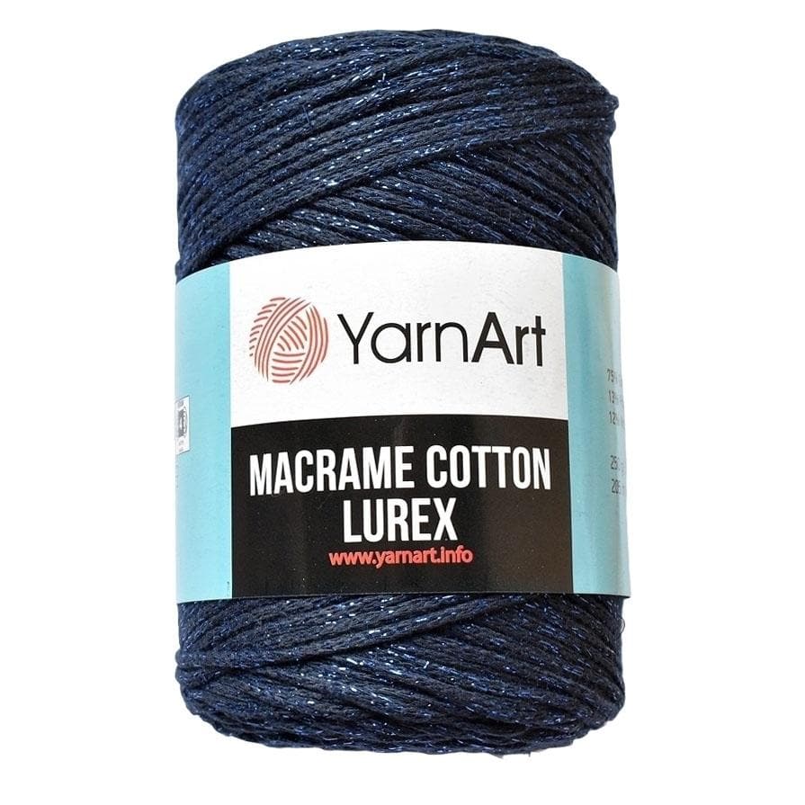 YarnArt Macrame Cotton Lurex is a super sturdy macramé cord crafted from a cotton blend with a hint of metallic sheen. Its thick, ribbon-like structure and subtle glitter make it perfect for statement wall hangings, plant hangers, rugs, and other chunky home décor or accessories.